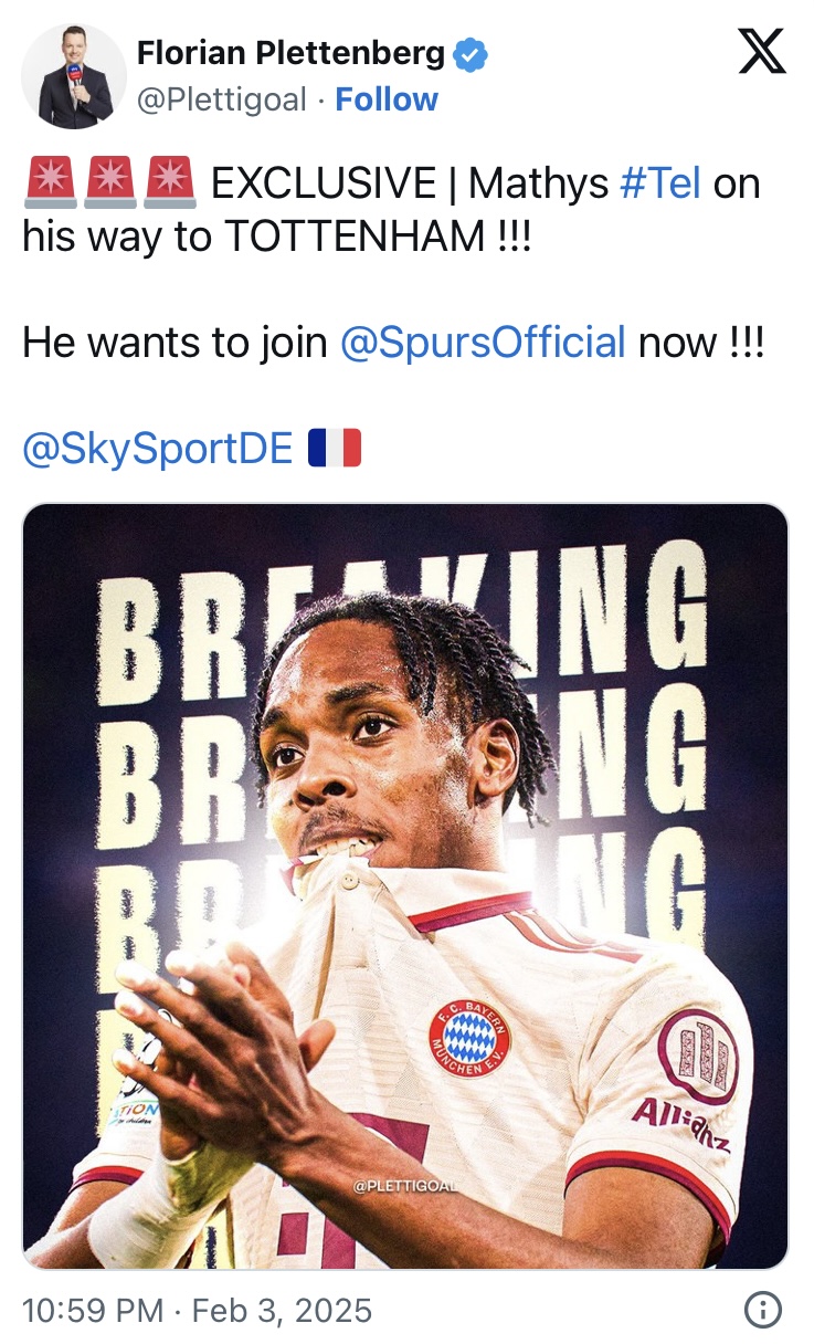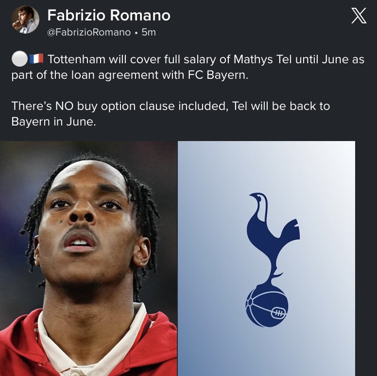 (속보) 마티스텔 to 토트넘 단기임대 확정 작성자#8spree|작성시간25.02.03|조회수895 목록 댓글 0 글자크기 작게가 글자크기 크게가 거절햇다더니 이게 갑자기 왠 뜬금포^^ 5개월 단기임대(구매옵션 없음&6월 바이언 복귀) 즉, 양민혁이 QPR 갓다가 복귀하는거랑 똑같음~ 다음검색 현재 게시글 추가 기능 열기 북마크 공유하기 신고 센터로 신고 댓글 댓글 0 댓글쓰기 답글쓰기 댓글 리스트