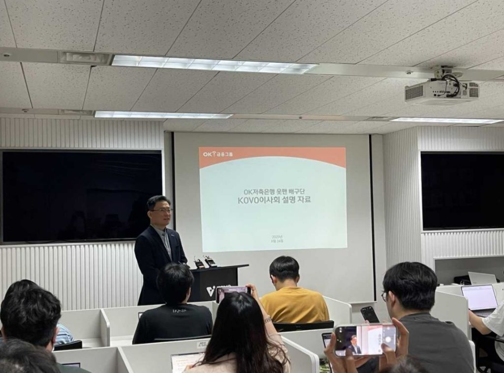 부산 연고 이전에 관해 설명하는 권철근 OK저축은행 단장