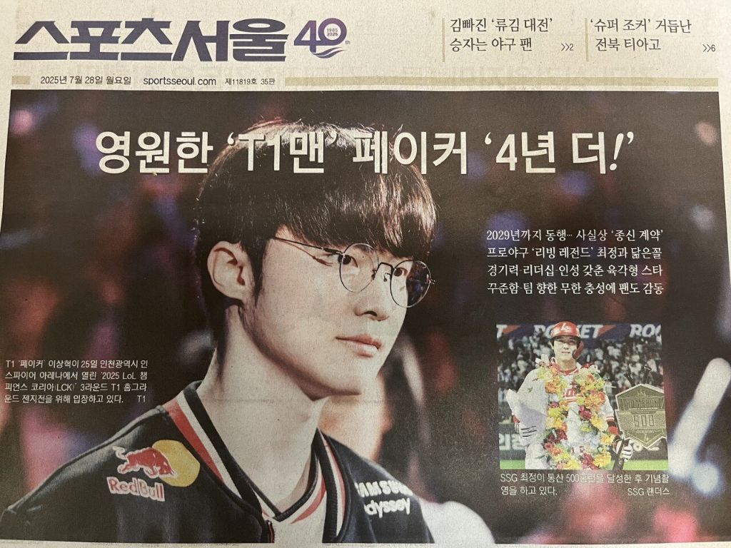 [스크랩] 오늘자 스포츠서울 1면.jpg 작성자Jason-Kidd|작성시간25.07.28|조회수2,579 목록 댓글 1 글자크기 작게가 글자크기 크게가 '페이커 재계약' 다음검색 스크랩 원문 : 이종격투기 현재 게시글 추가 기능 열기 북마크 공유하기 신고 센터로 신고 댓글 댓글 1 댓글쓰기 답글쓰기 댓글 리스트 작성자현운데요 | 작성시간 25.07.28 만쉐 댓글 전체보기