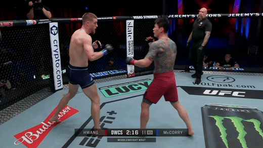 한방 쎄게 쳐서 ko시킬려고 했는지 기 모으고 있다가 맥코리한테 뒷손 붙잡혀서