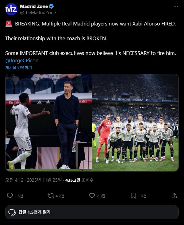 속보: 여러 레알 마드리드 선수들이 이제 사비 알론소 해고를 원합니다.