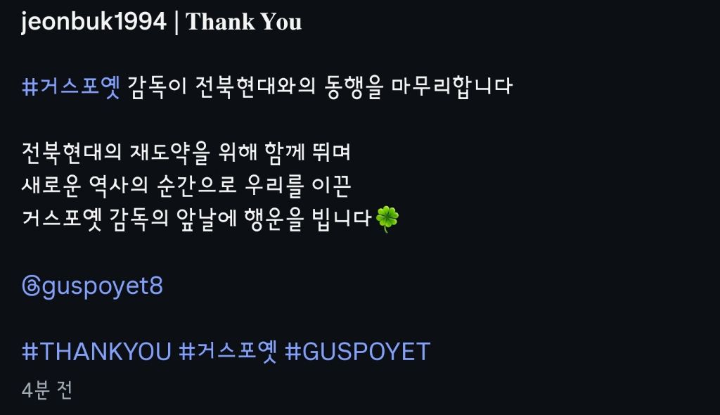 작성자전태풍최고 작성시간 25.12.08 작년에 전북이 승강플레이오프까지 갔다가 올해는 1부리그 우승시킨 명장인데... 안타깝습니다~