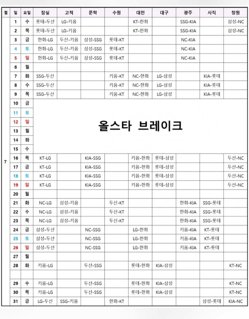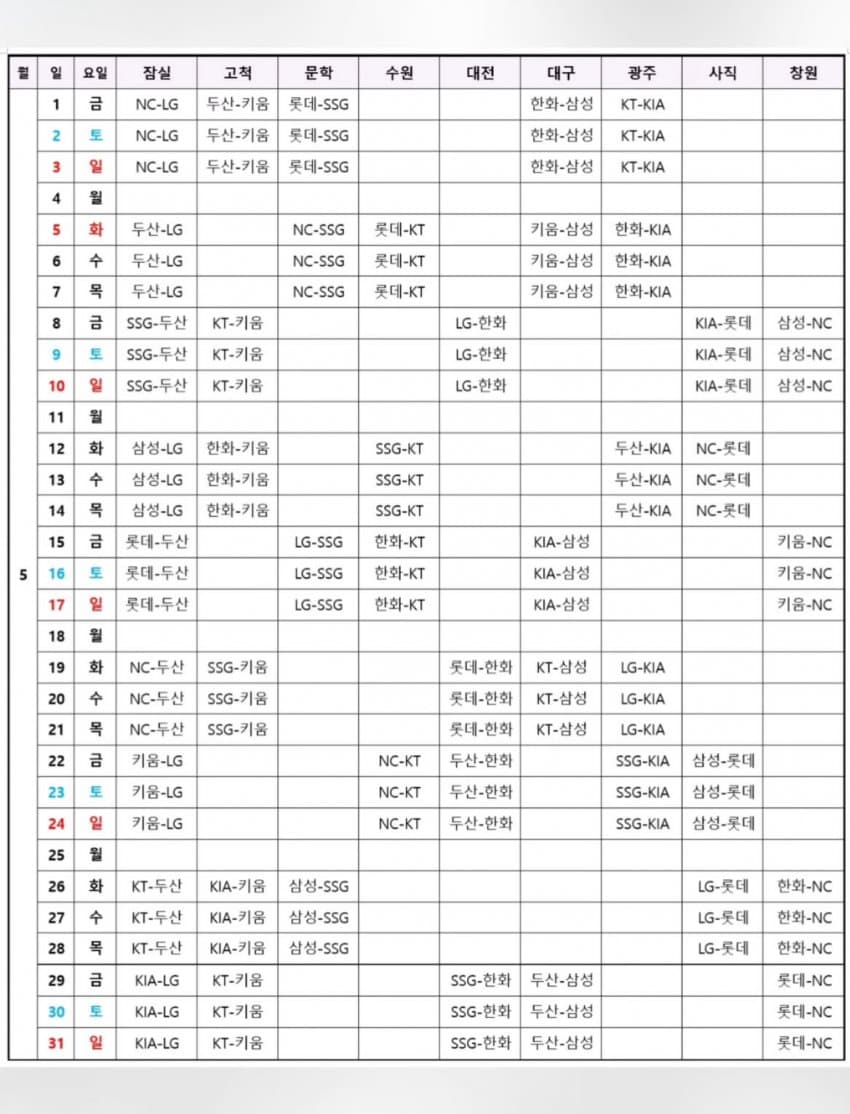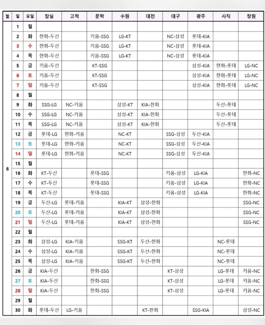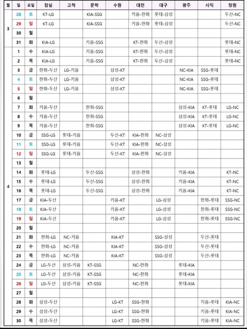 2026시즌 프로야구 전체 일정이 공개되었습니다.