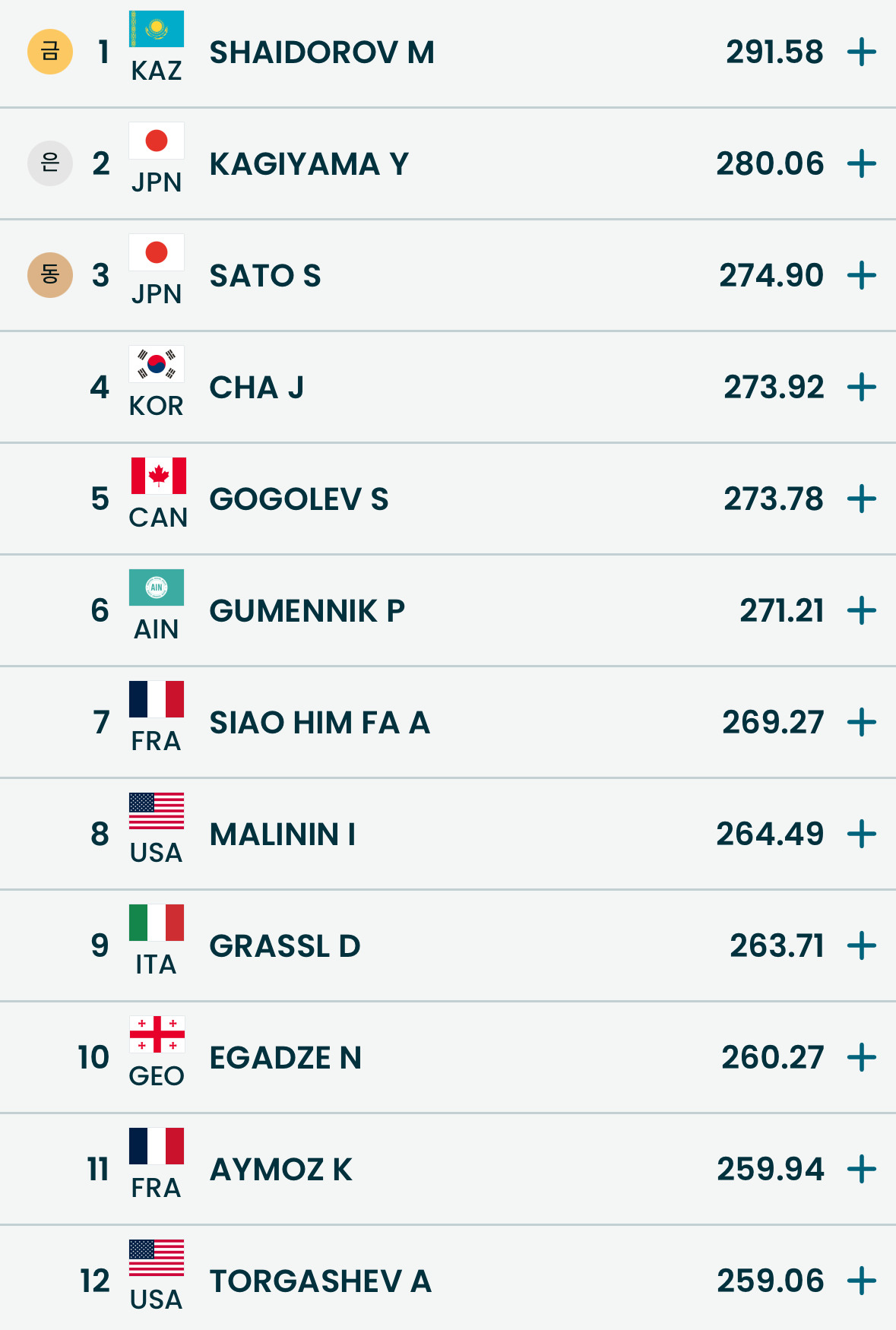 작성자legend#31 작성시간 26.02.14 5위 선수와도 점수차가 거의 없네요.. 삐끗 한 번으로 순위가 오르내렸을.. 그래도 메달권이라 더 아쉽네요ㅠ