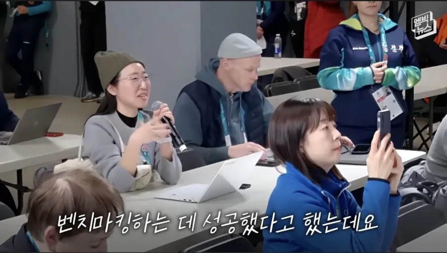 한국기자가 황대헌이 못들은것처럼 하자 다시 똑같이 질문 던짐