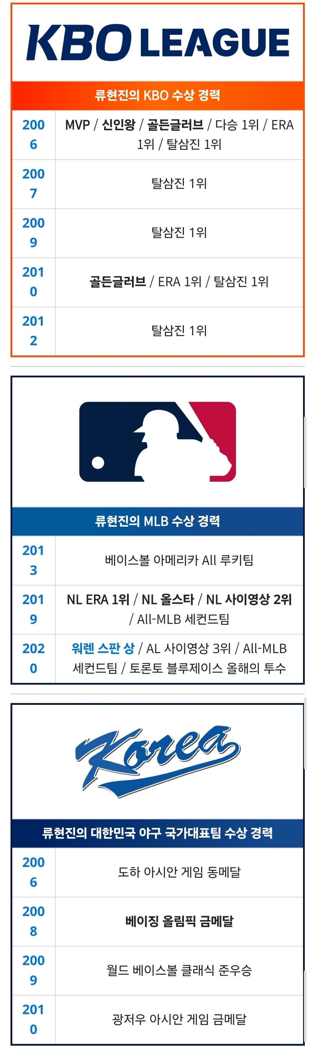 류현진 : 끝맺음이 아쉽지만, 이렇게 대표팀에 복귀해 후배들과 함께하게 돼 영광스러웠다.
