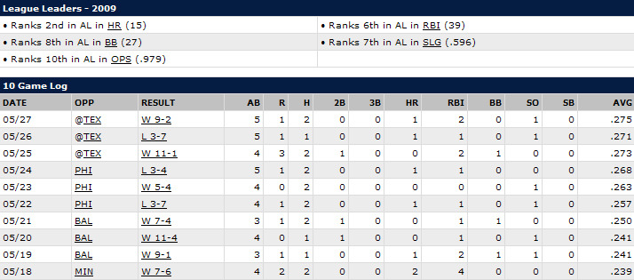 최근 10경기 41타수 17안타(타율 .414) 7홈런 - 15타점 - 3볼넷- 2HBP -10경기 연속 안타!!!!