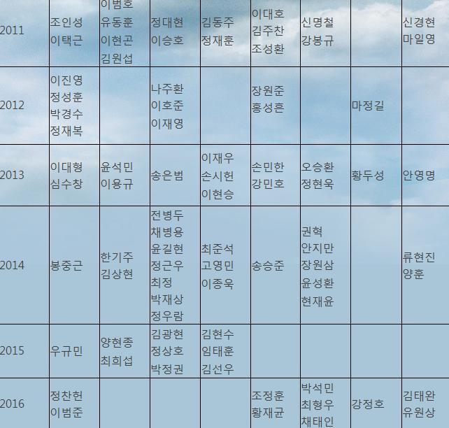 이거 제가 인터넷에서 그냥 짤라온 거라서 작성하신분이 조금 틀릴수도 있을 것 같습니다. (제가 선수들 사정은 다 아는건 아닙니다)