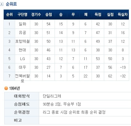 그로부터 1994년 5월 1일 대우로얄즈의 경기에서 김경래의 선취골과 이주영의 결승골로 2대 1로 이기게 되었습니다.
