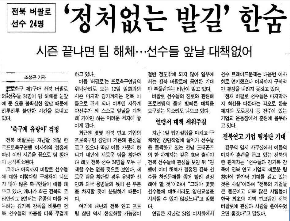 '전북 버팔로‘선수들은 눈물젖은 빵을 먹으며 봉급도 제대로 받지 못하며 하루하루 경기에 임했습니다.
