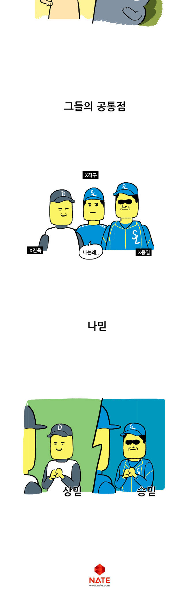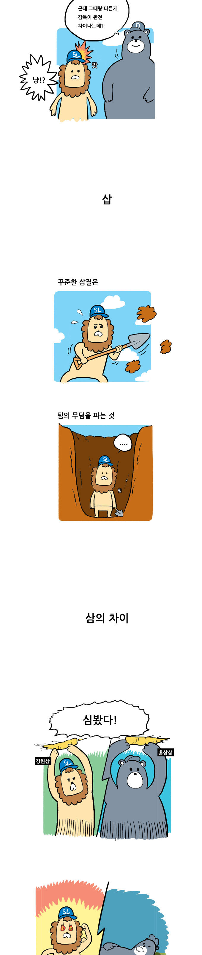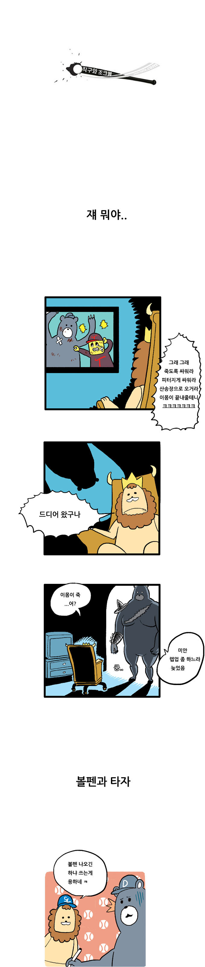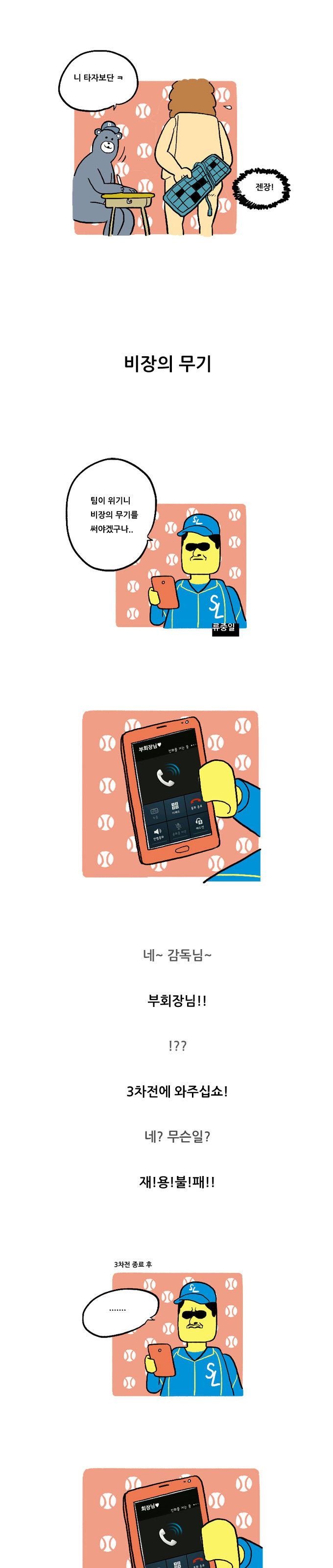 샴의 직구와 조크볼 카툰입니다..