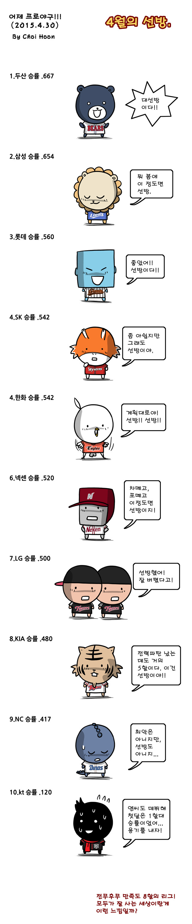 답댓글 작성자환상의 식스맨 작성자 본인 여부 작성자 작성시간 15.06.14 저도 그렇게 생각합니다. 다만 이 만화를 올린 건 그동안의 kt위즈의 행보와 막내구단의 고초를 보여주고 앞으로의 가능성을 보여주기 위한 것일 뿐,