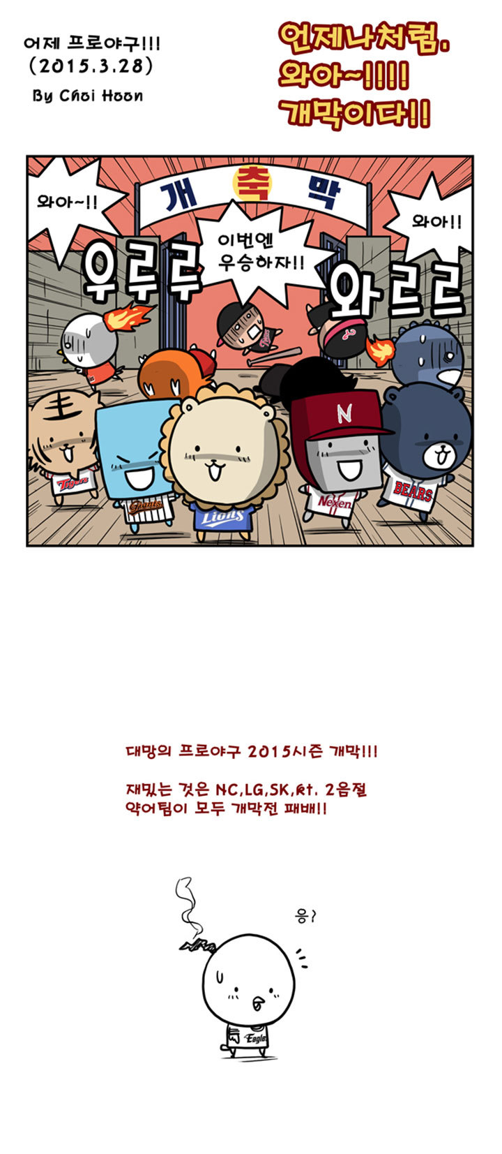 드디어 최훈 카툰에서도 웃는 모습과 간지 폭풍의 모습으로 변하기 시작했다 ㅜㅜㅜㅜㅜ