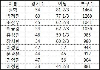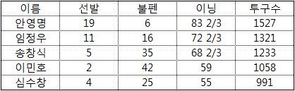 선발과 불펜을 동시 경험한 선수 5명은 좀 억지로 맞춘 느낌이 있기는 한데 그냥 참고만 하시기를 바랍니다.
