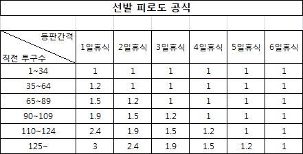 나흘 이상 쉬고 등판할 경우는 가중치 없음