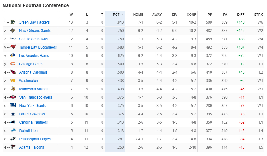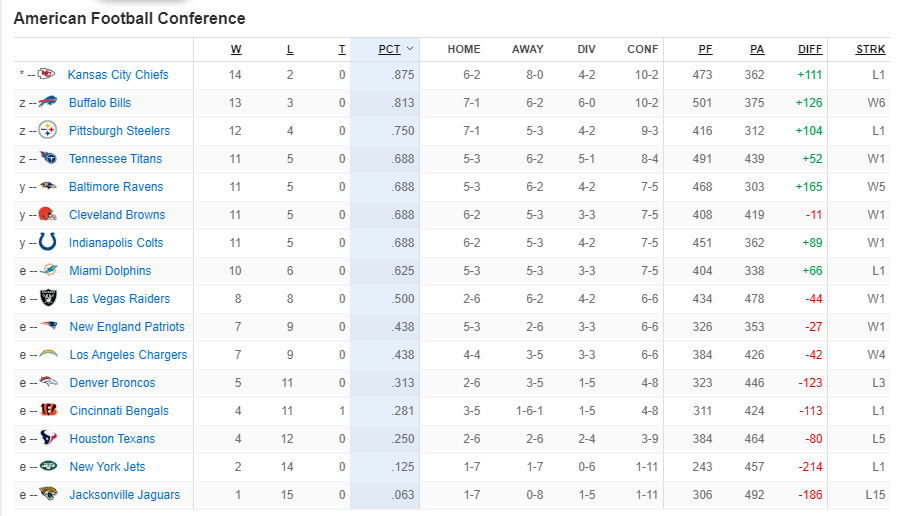 * NFL은 원래 컨퍼런스 순위보다는