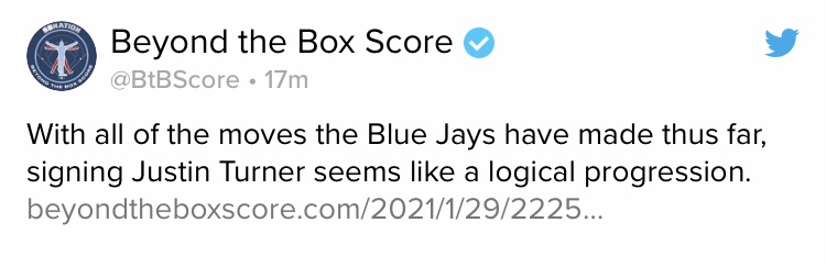 작성자KAWHI NOT #2 작성시간 21.01.30 근데 기사내용은 무엇가 근거가 있는게 아니라 그냥 기자의 희망상황 혹은 추측이네요. 토론토는 이제 타자가 아니라 투수를 계약할것 같습니다. 현재 그리칙 트레이드 루머와 로젠텔 마무리 투수 sign 루머가 있더라구요