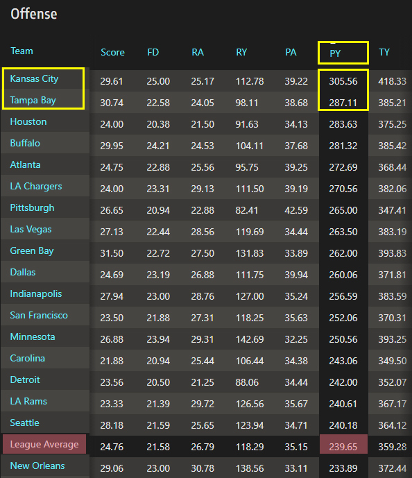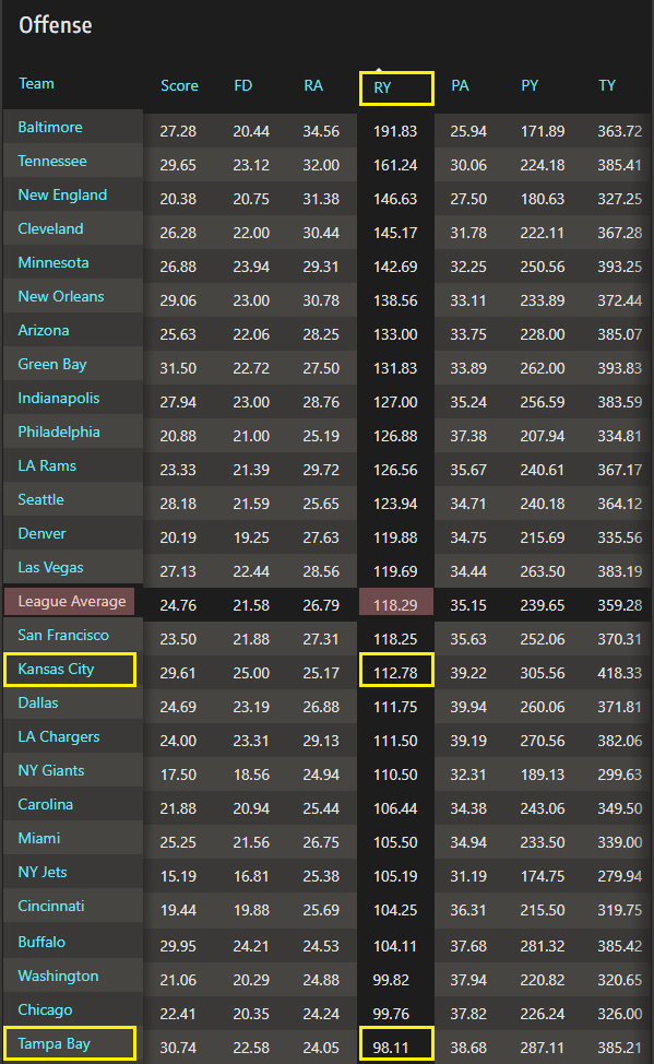 러싱 시도 당 평균 야드(ypc)도 최대한 많이 가져가야 합니다.