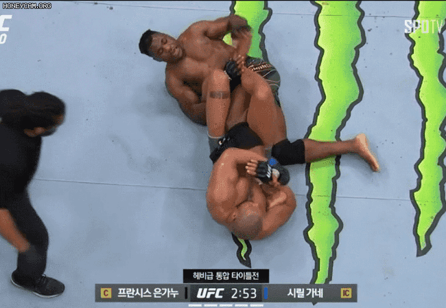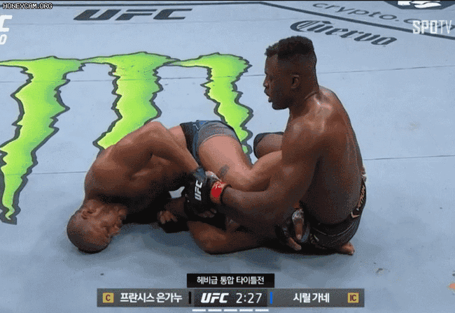 기무라를 힘으로 풀고 막판에는 힐훅까지 걸었는데 아킬레스 건에 타격도 안 받고 살며시 웃고 있음.