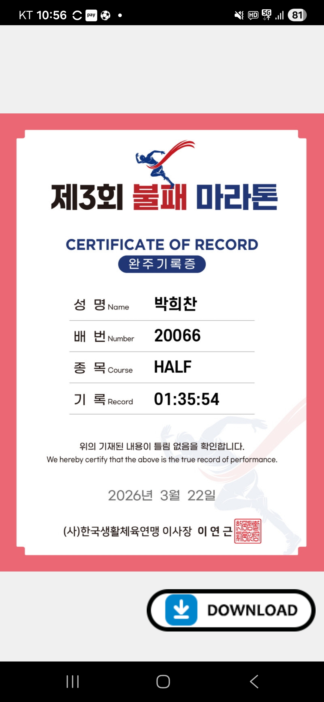 작성자ASSA 작성시간 26.03.22 언제 10킬로를 저 페이스로 뛸수 있을까요...
