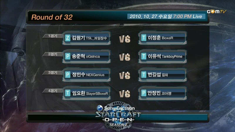 임요환 선수와 박준선수의 대결은 아쉽게도 박준선수가 떨어지므로 무산됐지만
