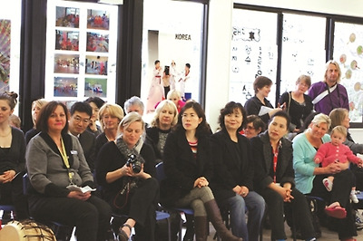 아담한 강당에서 한국어 개설을 축하하는 마지막 순서는 '삼고무' 공연이다. 멜번에서 한국문화패 '소리'를 이끌고 있는 김민정, 이성범 부부가 준비한 화려한 대단원의 막이다. 한복을 맵시있게 차려 입은 김민정씨가 이성범씨의 장구 반주에 맞춰 역동적인 북춤을 공연하는 동안 아이들은 물론 학부모와 손님들도 모두 넋을 잃은 듯 눈이 북채를 좇느라 바쁘다. 북소리가 멈추자 박수소리에 강당이 떠날 것 같다. 색동 한복을 입은 한 여자 아이는 "again"이라며 앙코르를 외친다.