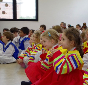 모디알록 초등학교 Gillian Phillips 질리안 필립스 교장의 귀빈 환영사가 끝난 후 먼저 프렙과 1학년 학생들이 한복을 입고 나왔다. 장인선 교사의 "큰 절 하세요~", "일어나세요~~", "들어가세요~~"라는 구령에 맞춰 큰 절을 했다. 제법이다.