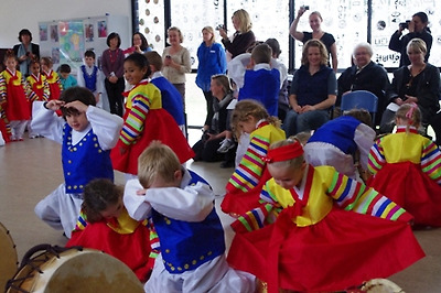 두 학기(*오스트레일리아 학교는 고등학교까지 term(텀)제로 돼 있다. 1년이 4학기(term)로 이루어져 있으며 한 학기는 약 10주이다) 동안 배운 한국어 실력을 자랑하는 시간은 한국 노래 "안녕하세요, 안녕하세요"로 시작했다.