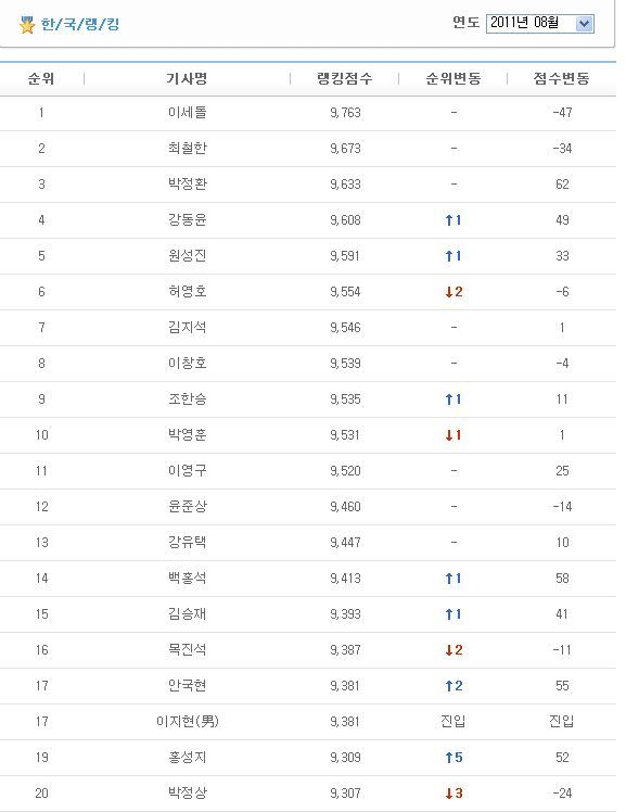 2010년 한국랭킹 1위 승률 82% .... 덜덜