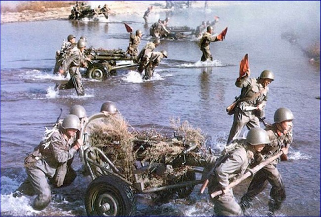 북한군의 120밀리 박격포... 운반하는 모습이 참 북한스럽다...