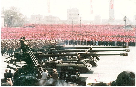 북한 122밀리 자주포... 그냥 포크래인 궤도위에 포만 덩그러니 올려놓은 구조다... 주변에 포탄이 낙하하면 조작요원들은