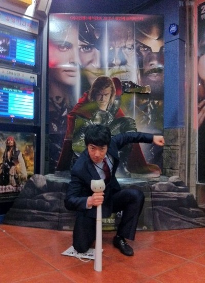 다름이 아니고 어벤져스 사진에 키티봉을 들고 있는 사람을 넣어서