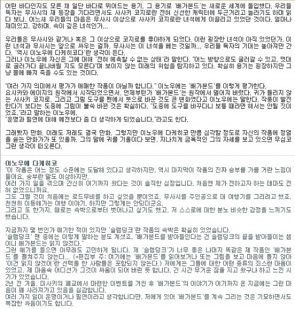 옛날에는 `최고의 만화가, 이노우에가 그리는거니까 뭐든지 다 이유가 있겠지' 라는 생각으로 봤었는데