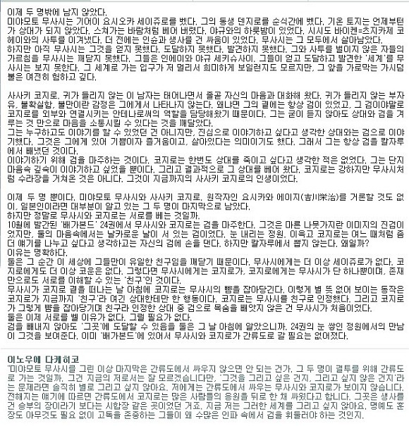 코지로랑 만나기 전까지 스토리가 조금 늘어진다는 느낌을 지울수가 없네요.