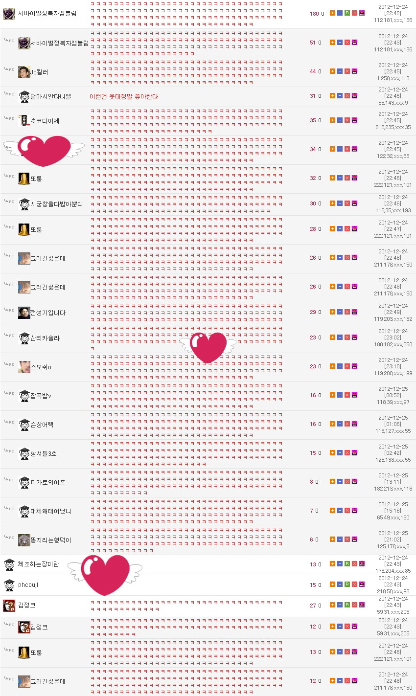 작성자vanillasky 작성시간 12.12.28 저건 며칠전 오유라는 극솔로사이트에서 떠돌던 좌빨의 테러 ㅠㅠ 그걸 다시 이곳에서 볼줄이야~