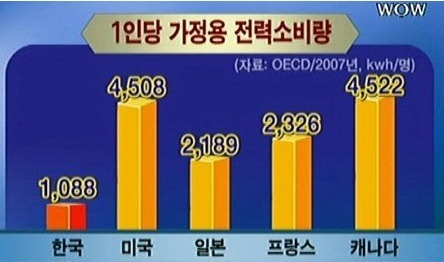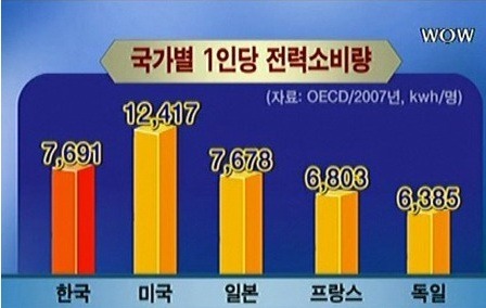 1인당 전기 소비량이 선진국에 비해 많다는 것이죠.