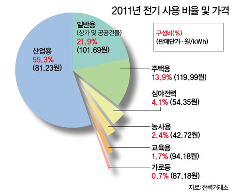 대한민국 전력 소비 중 77프로를 대한민국 가정이 아닌 곳에서 사용하는 군요.