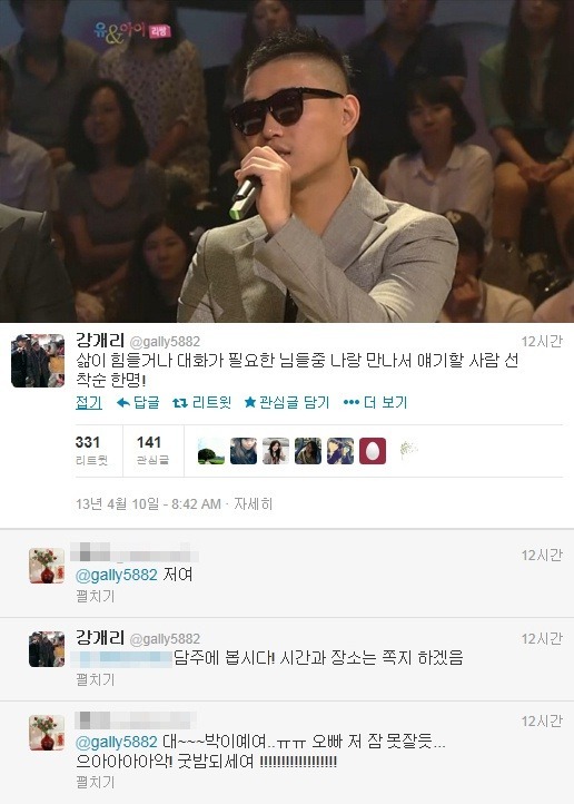 [스크랩] [오피셜] 게리, 트윗서 팬과의 만남 약속 지킴.jpg 작성자HEAT!Shaq32|작성시간13.04.19|조회수2,611 목록 댓글 4 글자크기 작게가 글자크기 크게가 ....여기서 포인트는 다음 만남을 또 공지한다는것!!!!트윗하시는 분들은 종종 개리 트윗 방문 하셔야할듯ㅎㅎ 다음검색 스크랩 원문 : 이종격투기 현재 게시글 추가 기능 열기 북마크 공유하기 신고 센터로 신고 댓글 댓글 4 댓글쓰기 답글쓰기 댓글 리스트 삭제된 댓글입니다. 답댓글 작성자닉스퀘어 | 작성시간 13.04.19 저 같아도 남친 데리고 나와서 짜증 지대로일듯ㅠㅜ 답댓글 작성자난나야~ | 작성시간 13.04.19 여자가 눈치가 없네..ㅎ 답댓글 작성자4dastreet | 작성시간 13.04.19 남자분은 개리쪽 지인입니다~~^^;;; 작성자bluetain | 작성시간 13.04.19 여자분이 전여친닮았네요...;;; 댓글 전체보기