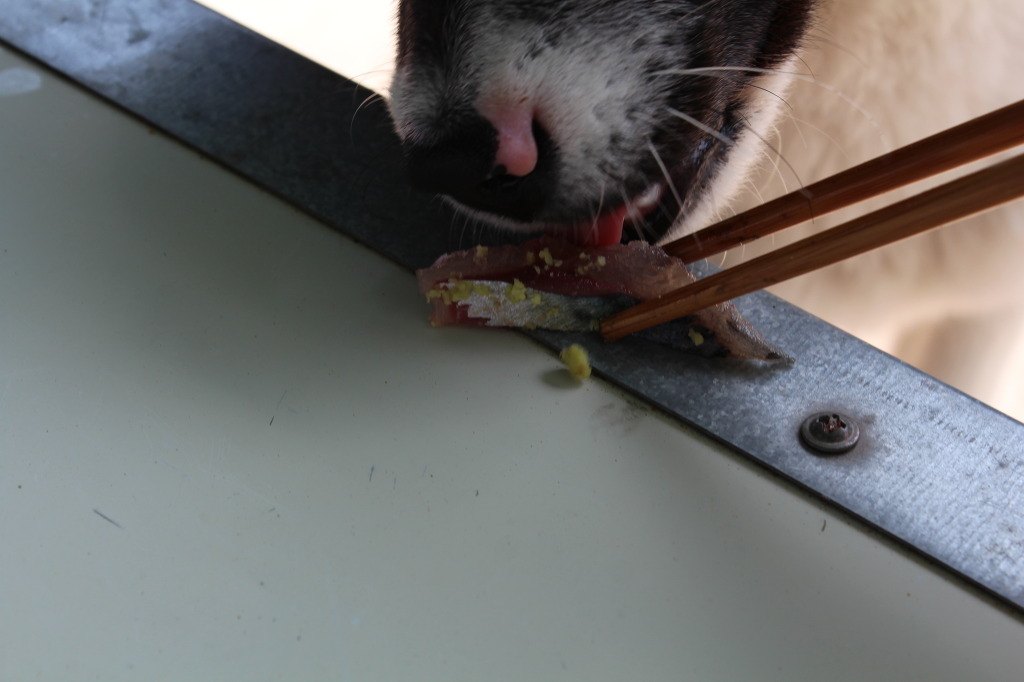 어류 도매업자의 개는 고추냉이(와사비)를 줘야 먹습니다
