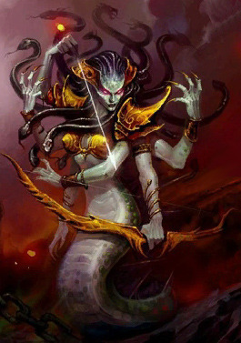 아즈샤라와 귀족들은 가까스로 살아남지만 말퓨리온은 그들에게 추방을 명령했고 아즈샤라는 몇 몇 귀족들과 함께 바다 속으로 들어가게 됩니다. 마력에 고통받은 아즈샤라와 그를 뒤따른 귀족들은 저주받아 뱀의 형상을 띈 ‘나가’ 종족이 되었습니다. 영원의 샘이 있던 혼돈의 소용돌이에 <나즈자타>라는 새로운 도시를 세우고 힘을 기르게 됩니다.