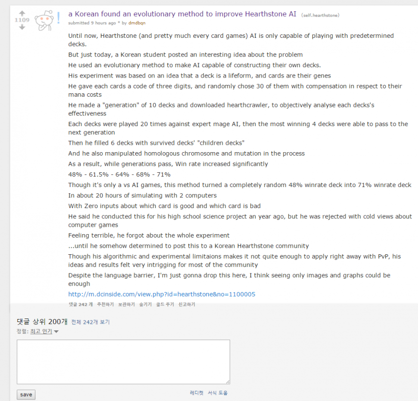 답댓글 작성자구름괴물 작성시간 15.07.29 http://gall.dcinside.com/board/view/?id=hearthstone&no=1100005&page 링크 다는건 문제가 안되겠죠? 제가 보기엔 살짝 과정된 면도 없잖아 있는것 같습니다. 물론 지금부터 제대로된 교육을 받는다면 어떻게 될지는 미지수 이지만 현재만 놓고 본다면... 자연선택설을 도입한건 좀 흥미롭네요. 그래도 논문 짜집기하는 학부졸업생보단 나은거같네요 ㅎ...