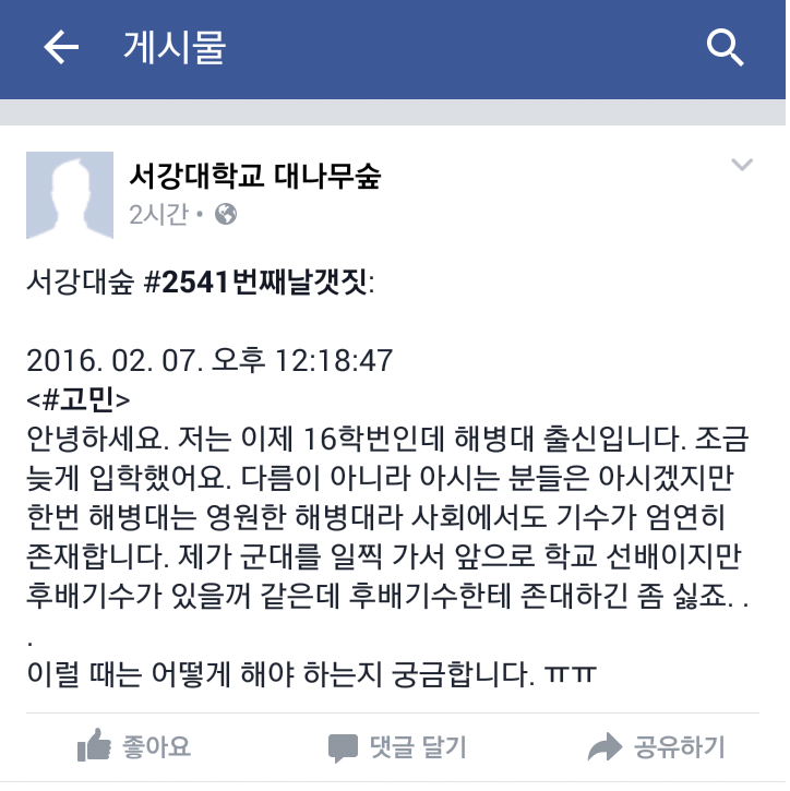 작성자슈팅라이크밀러 작성시간 16.02.08 사촌동생 중 하나가 해병 출신이고 전우회 활동 다 하고 했는데 가끔 술을 과하게(?) 먹는것 이외에는 일반인 선후배 사이와 다를 게 없더군요. 오히려 보이지 않게 조금씩 서로 도와주기도 하고. 이런것도 케바케 인가봅니다.