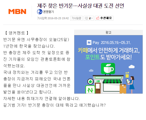 작성자난나야~ 작성시간 16.05.25 반기문이 대선이라니... 휴 우려스럽네요