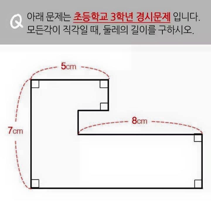 초3 수학문제 작성자hou슈팅센터|작성시간16.07.13|조회수2,345 목록 댓글 11 글자크기 작게가 글자크기 크게가 이건 연립방정식 말고초3방식으로 ㅋ 다음검색 현재 게시글 추가 기능 열기 북마크 공유하기 신고 센터로 신고 댓글 댓글 11 댓글쓰기 답글쓰기 댓글 리스트 작성자[Card*하경우*] | 작성시간 16.07.14 자로 재면 되나요?ㅋㅋ 작성자Joe College | 작성시간 16.07.14 그래도 경시대회 문제라서 다행이네요... 작성자bestmania | 작성시간 16.07.14 40입니다. 작성자bestmania | 작성시간 16.07.14 7+5+y+x+z+8+(7-y-z)+((8+(5-x)) = 40 작성자가즈나이트 | 작성시간 16.07.14 초등학생이면 자로 재야죠 댓글 전체보기