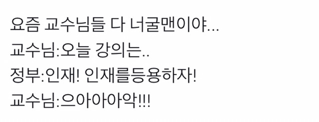 겟지렁 on Twitter“요즘 교수님들 다 너굴맨이야... 교수님:오늘 강의는.. 정부:인재! 인재를등용하자! 교수님:으아아아악!!!”twitter.com