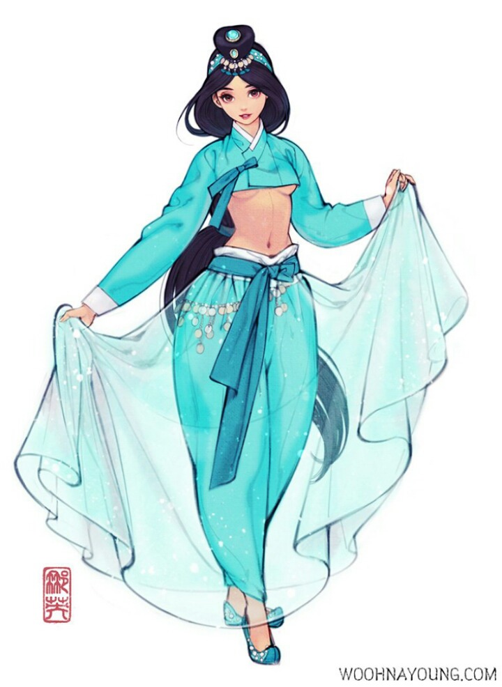 오늘 일러스트레이터 흑요석이 디즈니 공주 자스민을 그려서 공개함.