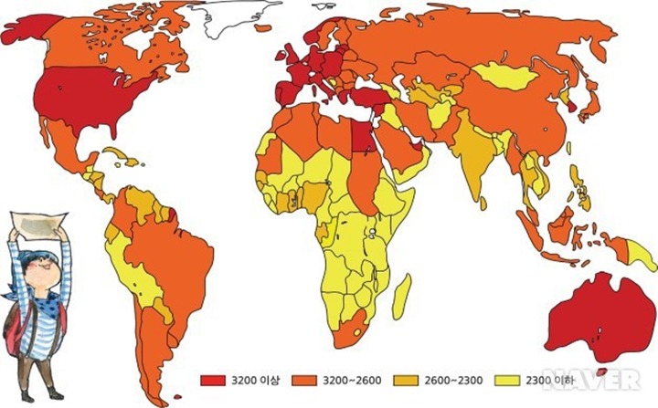 하루 평균 2300칼로리 이하를 간신히 섭취할 만큼