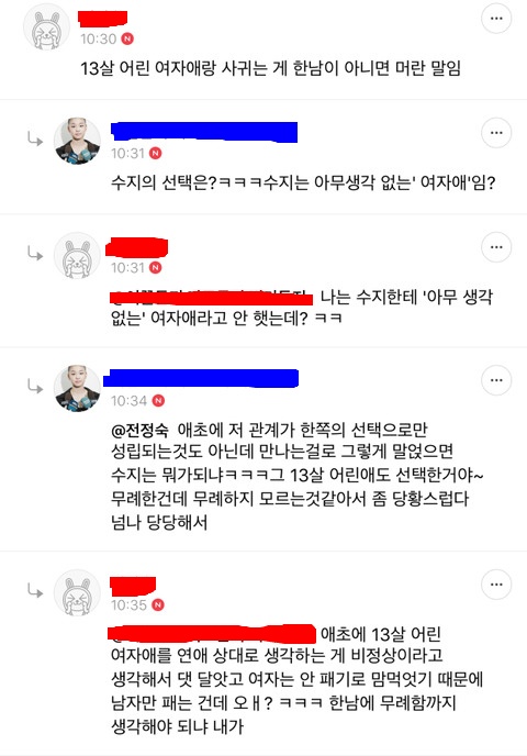 공평성과 개인의권리를 내세웠던 사람 5명은 댓글로 집단 다구리중