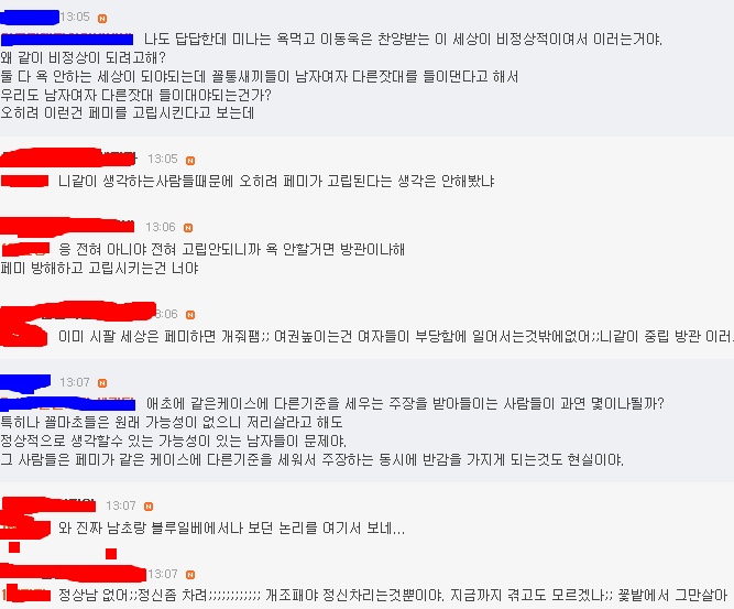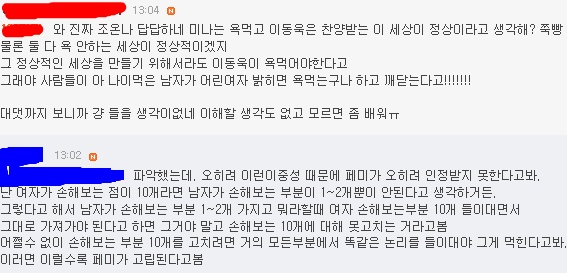 모든게 공평해야 페미가 진짜 인정받을수 있다는