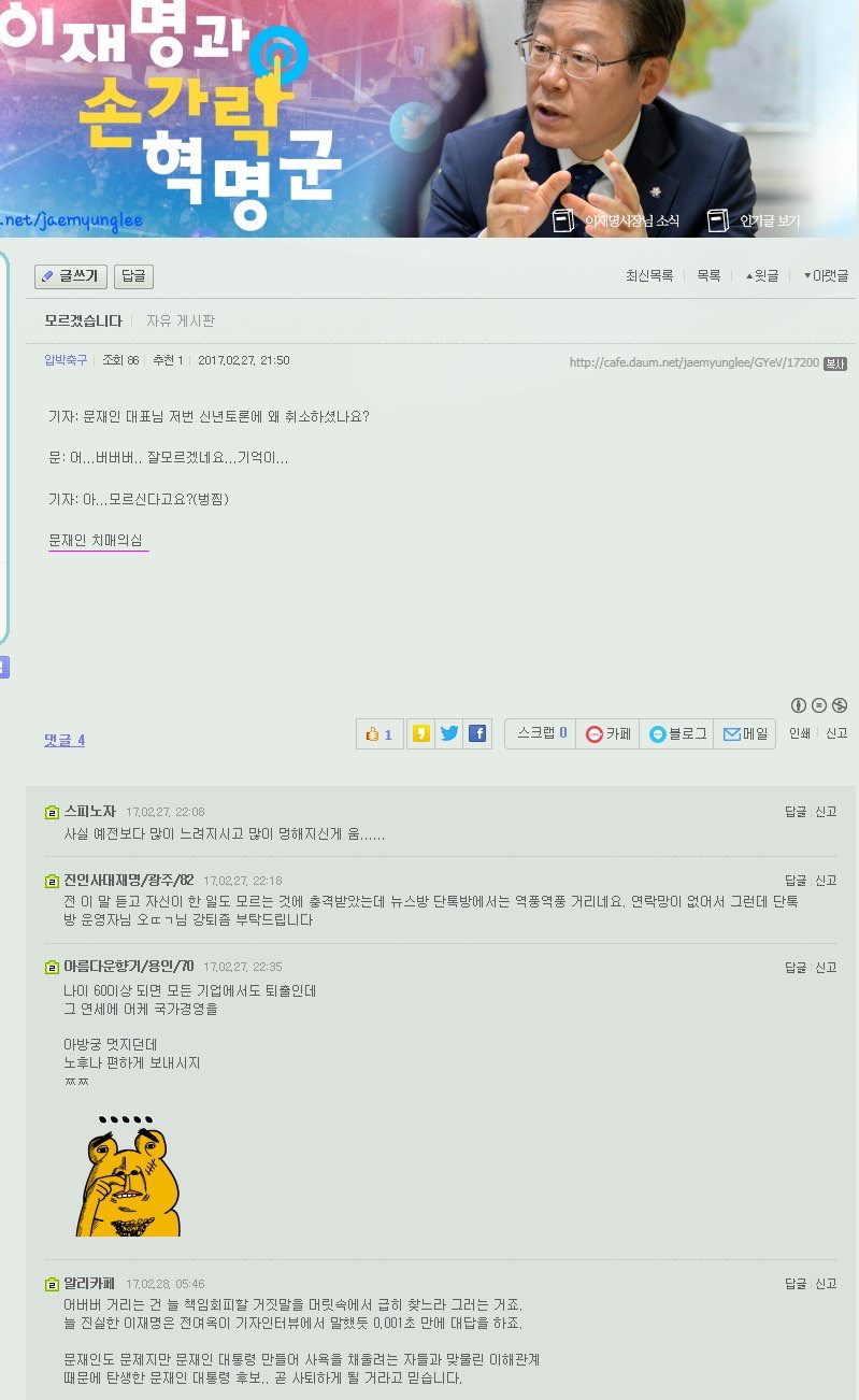 찾아보니 박원순처럼 이재명을 지켜야한다는 글을 비스게에 처음 올린게 저 더군요..이렇게 될줄은. -